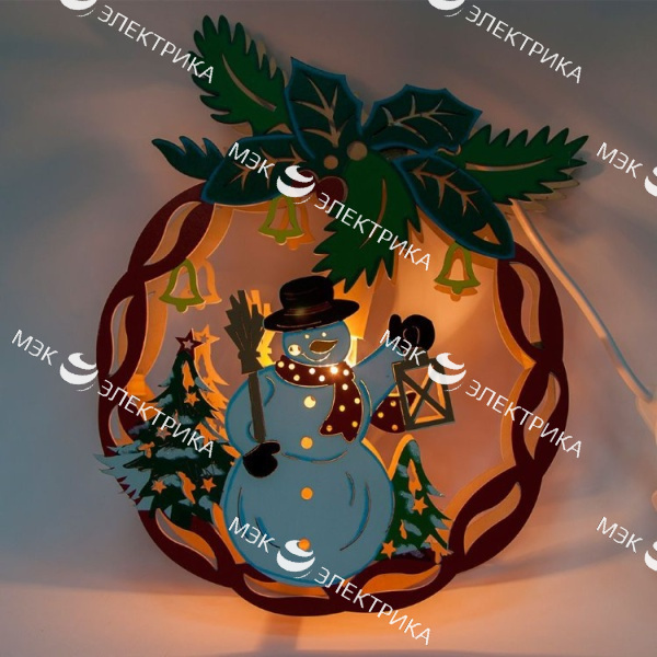 Деревянная световая фигура "Новогодний шар со снеговиком", LT068