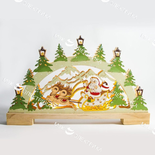 Деревянная световая фигура "Панно Санта в санях на батарейках", LT085
