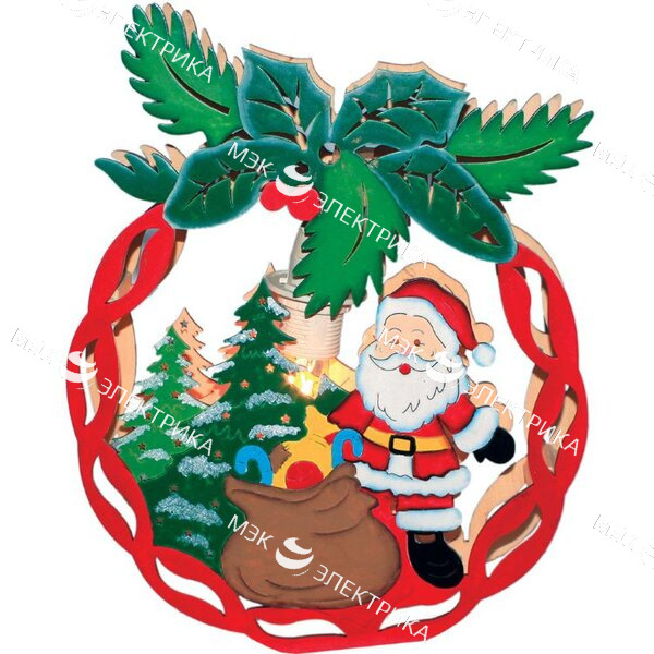 Деревянная световая фигура "Новогодний шар с Санта-Клаусом", LT084