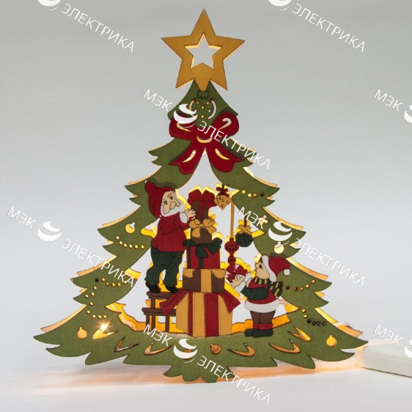 Деревянная световая фигура "Елка цветная со звездой", LT080