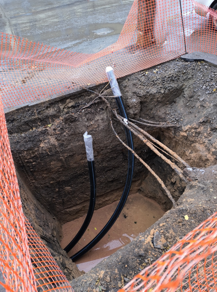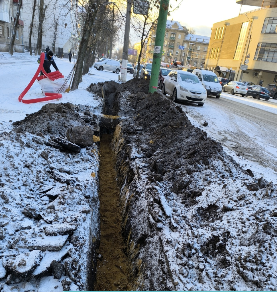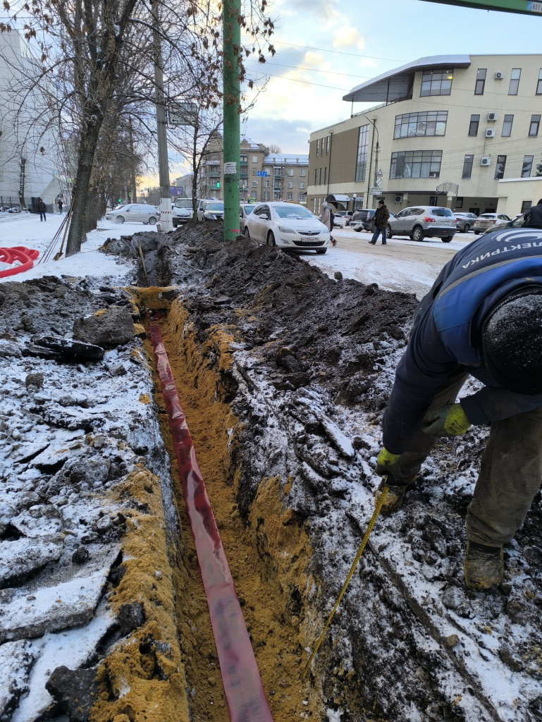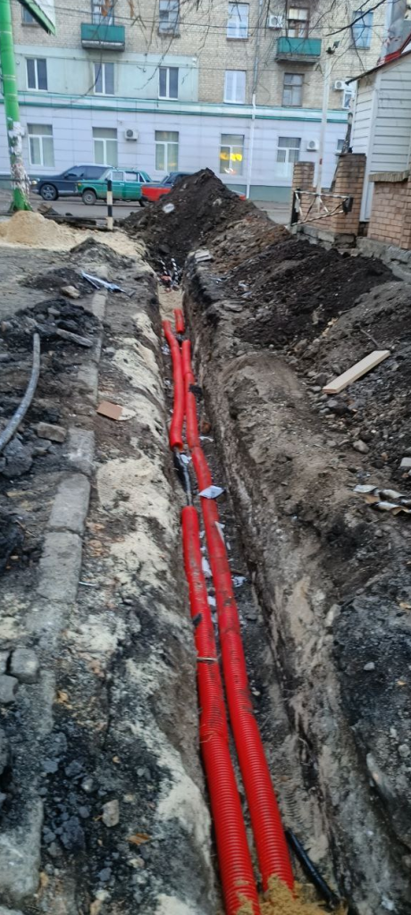 На участке по улице Алексеева также применялось сочетание траншейной прокладки и ГНБ. Это позволило аккуратно соединить новые линии электроснабжения с существующими сетями, не нарушая городской ландшафт.